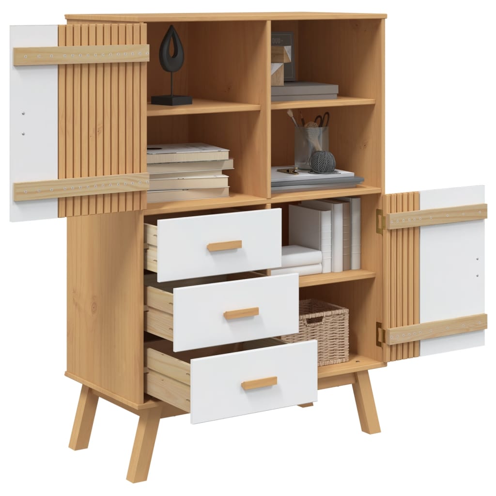 Credenza OLDEN Bianca e Marrone 85x43x125cm Legno Massello Pino 358617