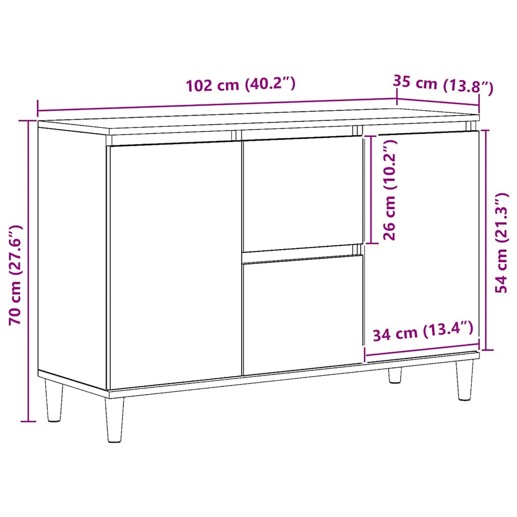 Credenza Rovere Artigianale 102x35x70 cm in Legno Multistrato 856485