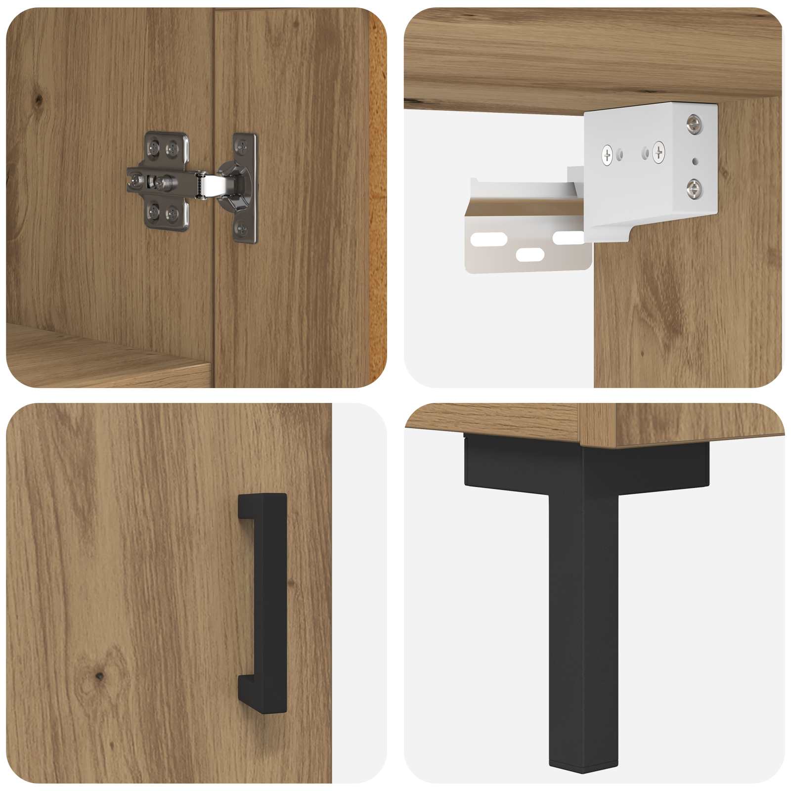 - Capacità di Stoccaggio Completa: Ha ripiani in legno e porte con cerniere che massimizzano lo spazio. La forma rettangolare lo rende adatto a vari ambienti, mentre il design pratico accoglie tutto, da stoviglie a oggetti decorativi, mantenendo l'ordine con stile.