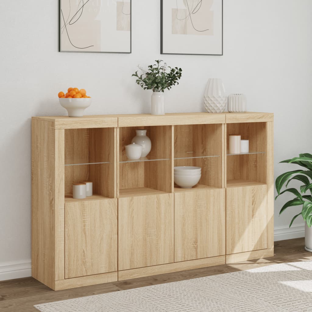 Credenze con Luci LED 3 pz Rovere Sonoma in Legno Multistrato 3209116