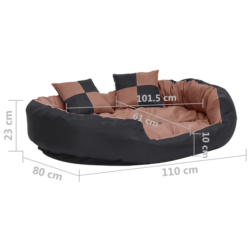 Cuscino per Cani Reversibile Lavabile Nero Marrone 110x80x23cm 171221