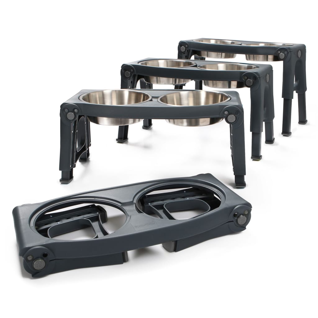 Le ciotole per animali rimovibili possono essere lavate in lavastoviglie e l'intera mangiatoia si ripiega per riporla facilmente quando non viene utilizzata.
