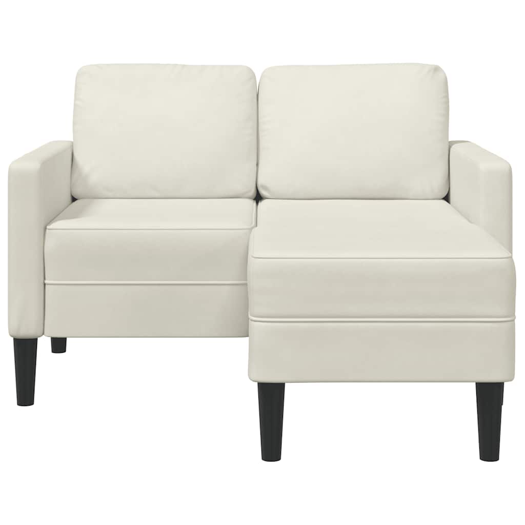 Divano 2 Posti con Chaise longue a L Crema 125 cm Velluto 4107075