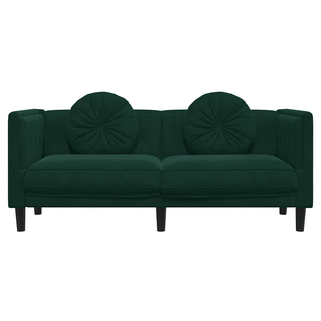 Divano a 2 Posti con Cuscini Verde Scuro in Velluto 372634