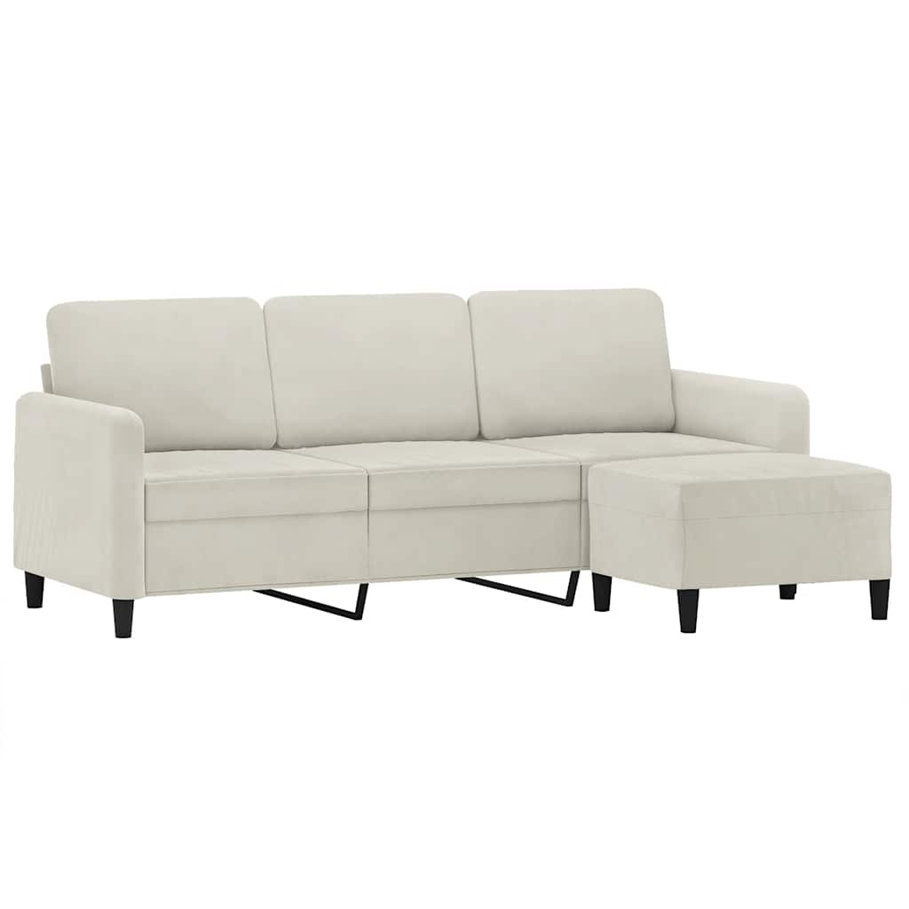 Divano a 3 Posti con Poggiapiedi Crema 180 cm in Velluto 3201182