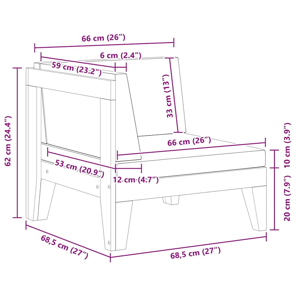 Il sedile ad angolo è realizzato in legno massello di acacia, un legno duro tropicale, resistente agli agenti atmosferici e molto durevole. Ha una struttura solida e richiede poca manutenzione. In combinazione con cuscini imbottiti, questo divano offre il massimo comfort. Il divano in legno è stato appositamente progettato per essere utilizzato come parte di un salotto e può essere utilizzato anche come divano singolo. Potete combinarlo con altri segmenti modulari come tavolino da caffè, poggiapiedi e divano centrale per creare le vostre personali configurazioni di salotti da giardino!