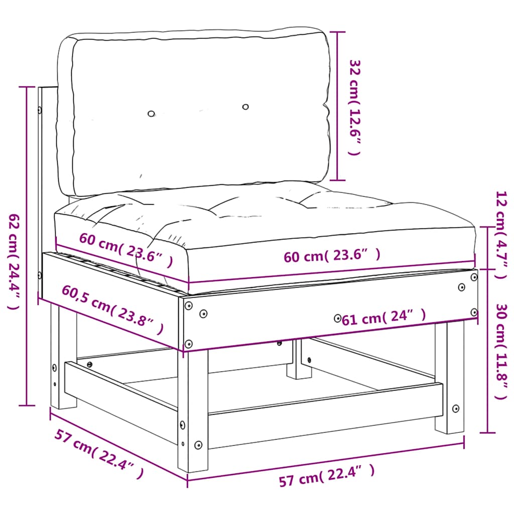 Divano Centrale con Cuscini in Legno Massello di Pino Grigio 825431
