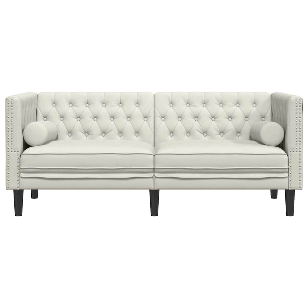 Divano Chesterfield con Rinforzi 2 Posti Crema in Velluto 372690