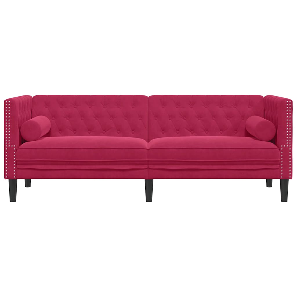 Divano Chesterfield con Rinforzi 3 Posti Rosso Vino in Velluto 372697