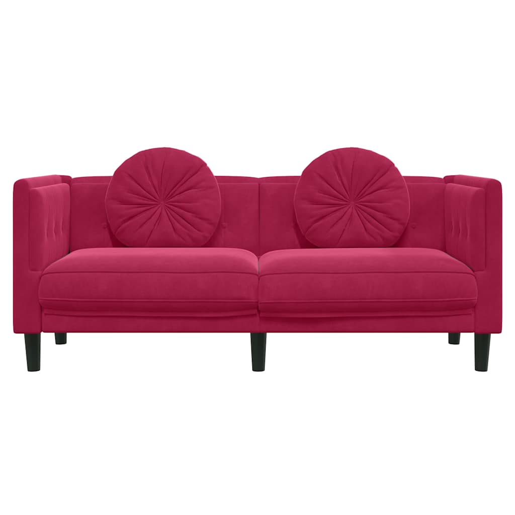 Divano con Cuscini 2 Posti Rosso Vino in Velluto 372636