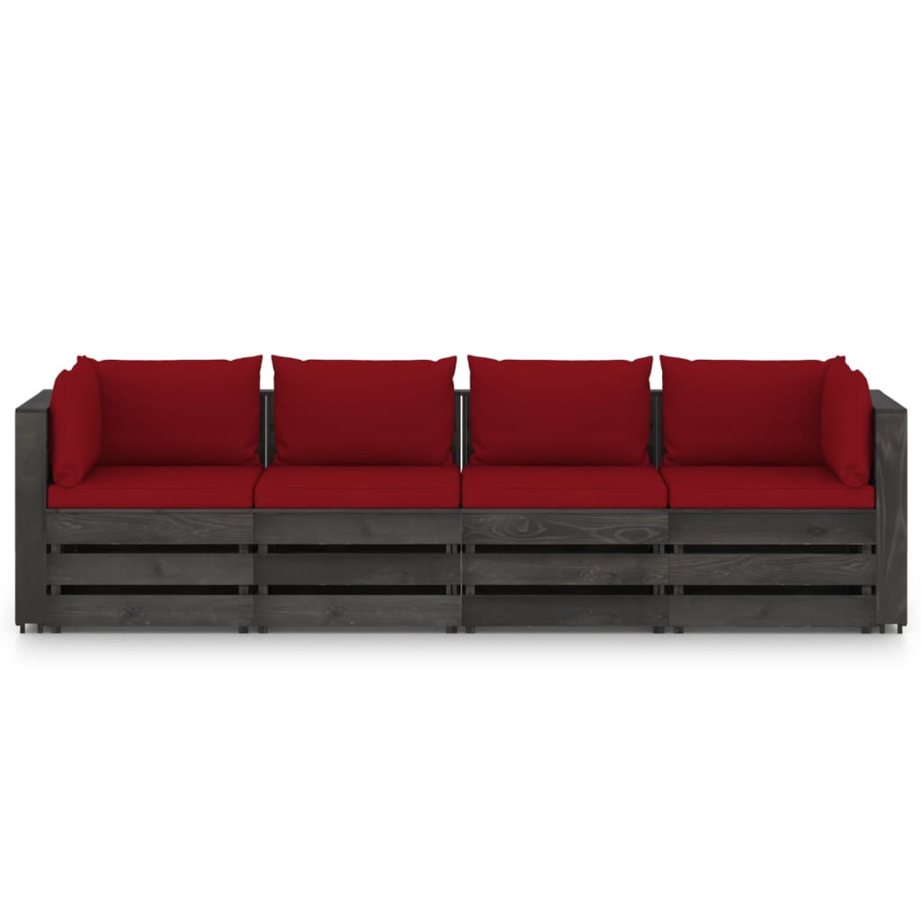 Divano da Giardino 4 Posti con Cuscini Legno Impregnato Grigio 3068225
