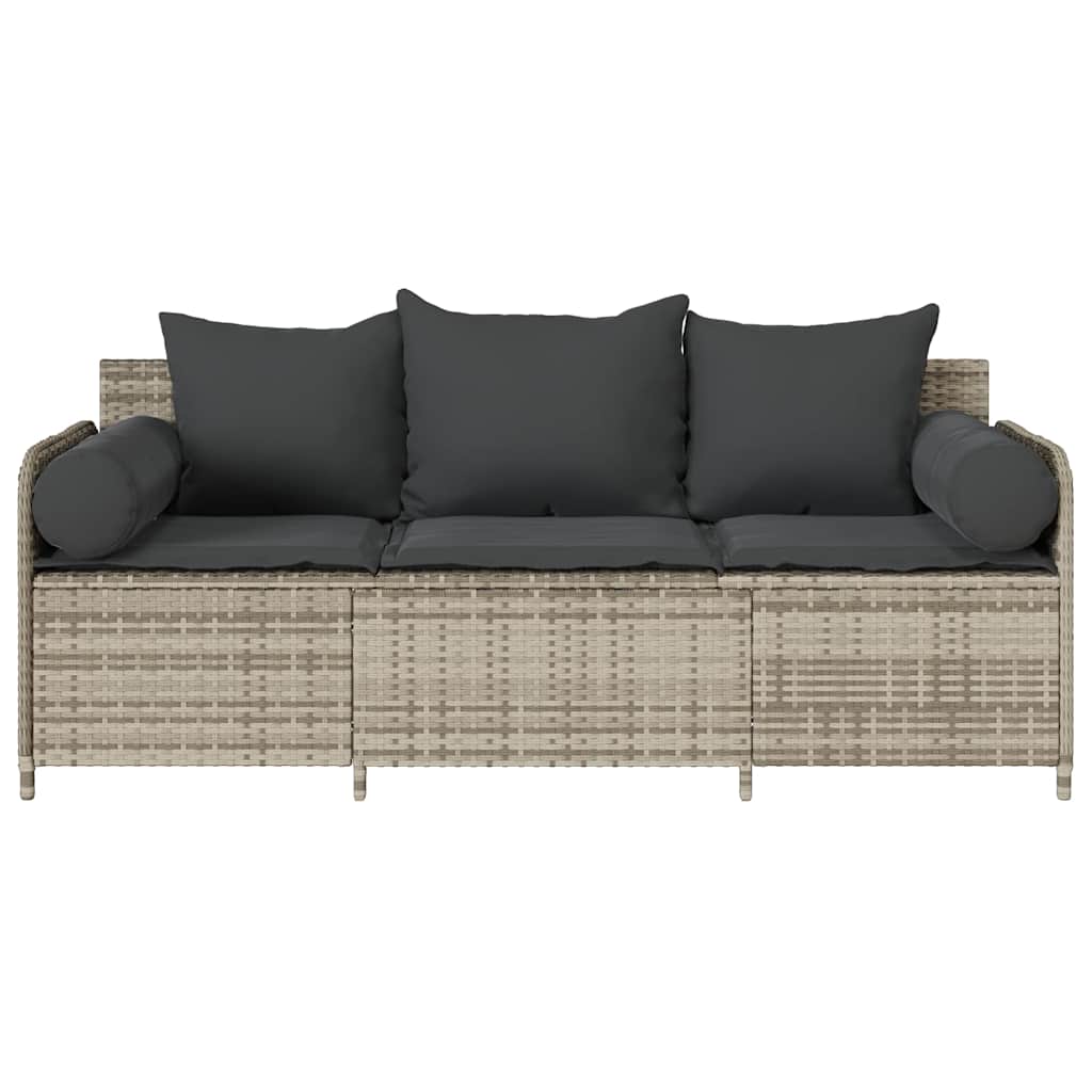 Divano da Giardino con Cuscini 3 Posti Grigio Chiaro Polyrattan 4104177