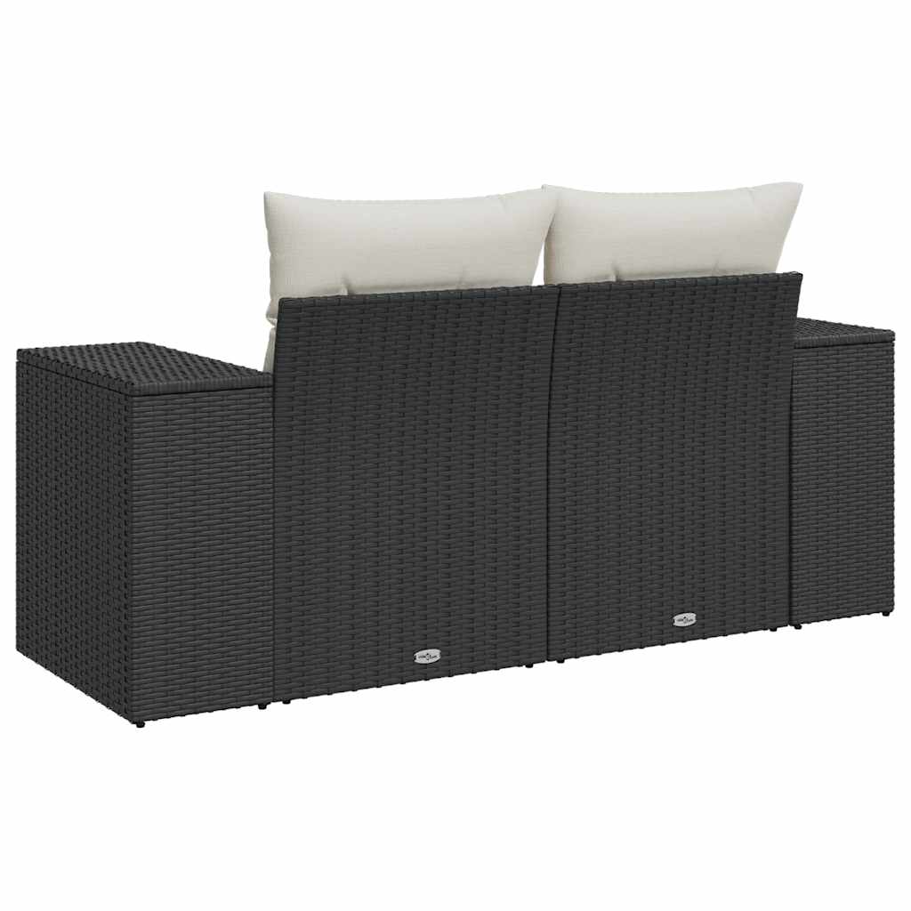 Divano da Giardino con Cuscini a 2 Posti Nero in Polyrattan 366007