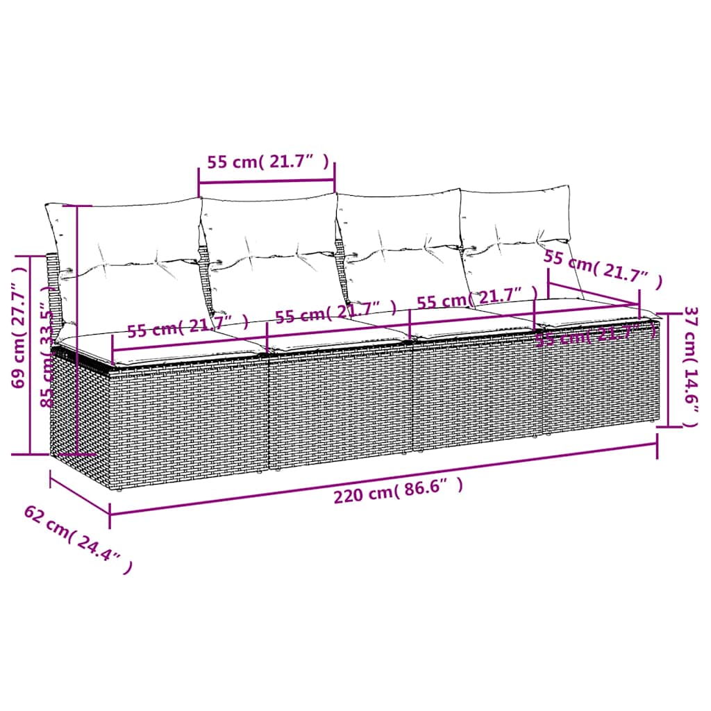 Divano da Giardino con Cuscini a 4 Posti Beige in Polyrattan 366089