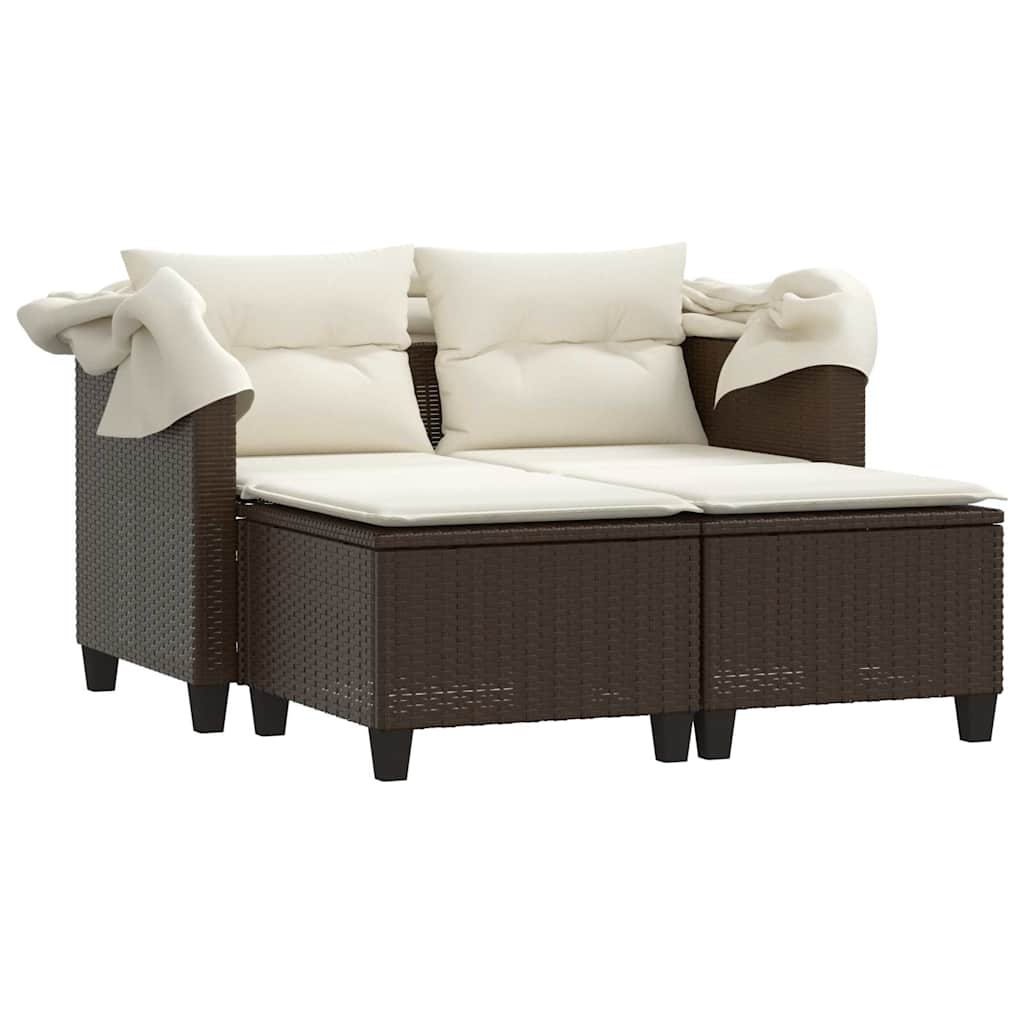 Divano Giardino 2 Posti Baldacchino Sgabelli Marrone Polyrattan 365782