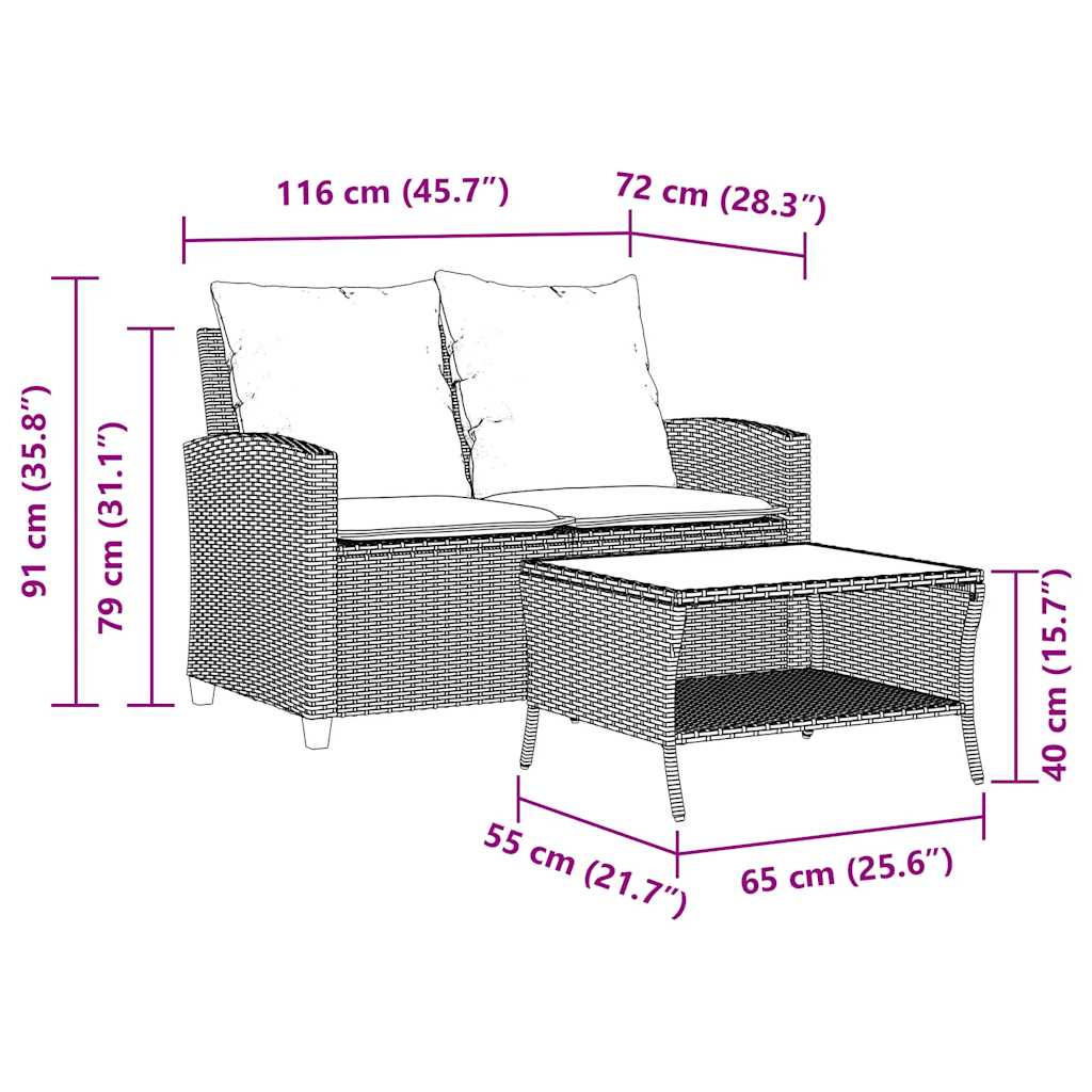 Divano Giardino 2 Posti con Cuscini e Tavolo Beige Polyrattan 4103848