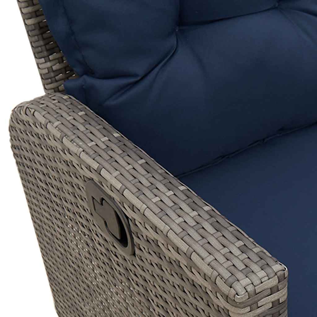 - Schienale regolabile: questo mobile da esterno ha una maniglia su ogni sedile. È possibile regolare lo schienale e il poggiapiedi in qualsiasi posizione tirando la maniglia e riportarli rapidamente nella posizione originale.