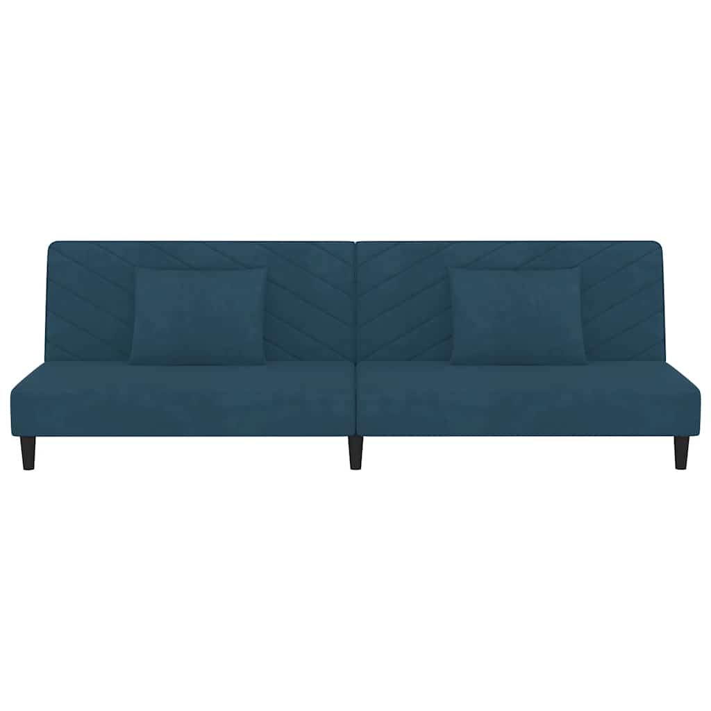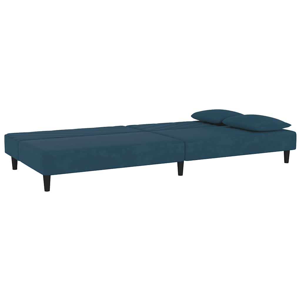 Divano Letto a 2 Posti con 2 Cuscini Blu in Velluto 375909