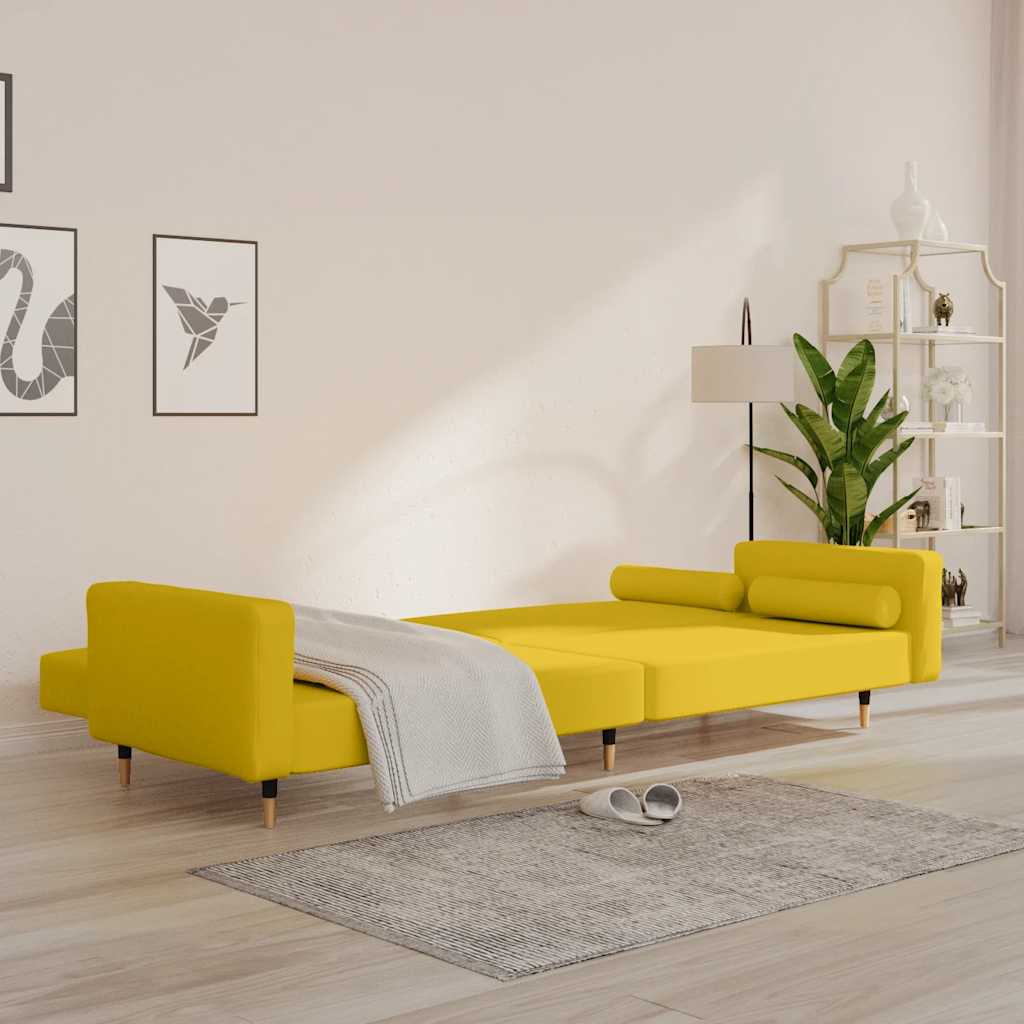 Divano Letto a 2 Posti con 2 Cuscini Giallo in Velluto 375753