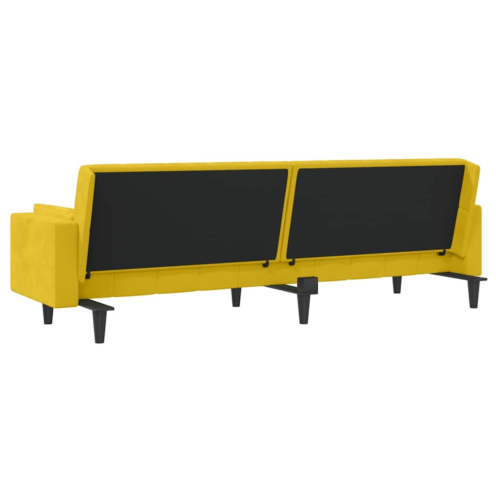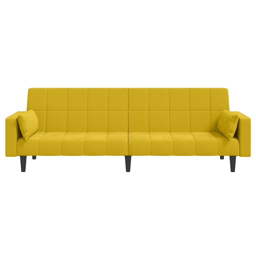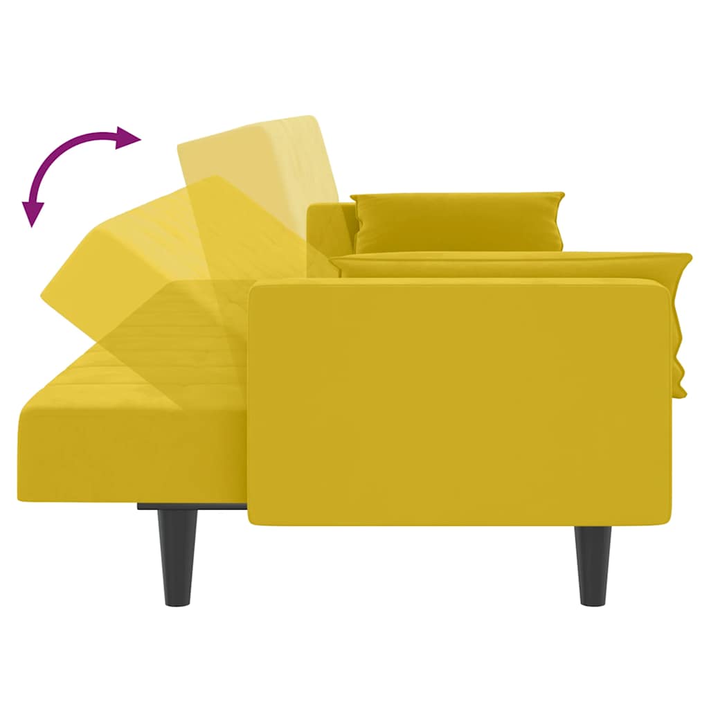 Divano Letto a 2 Posti con 2 Cuscini Giallo in Velluto 375851