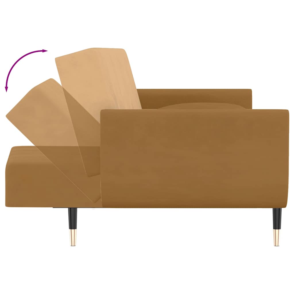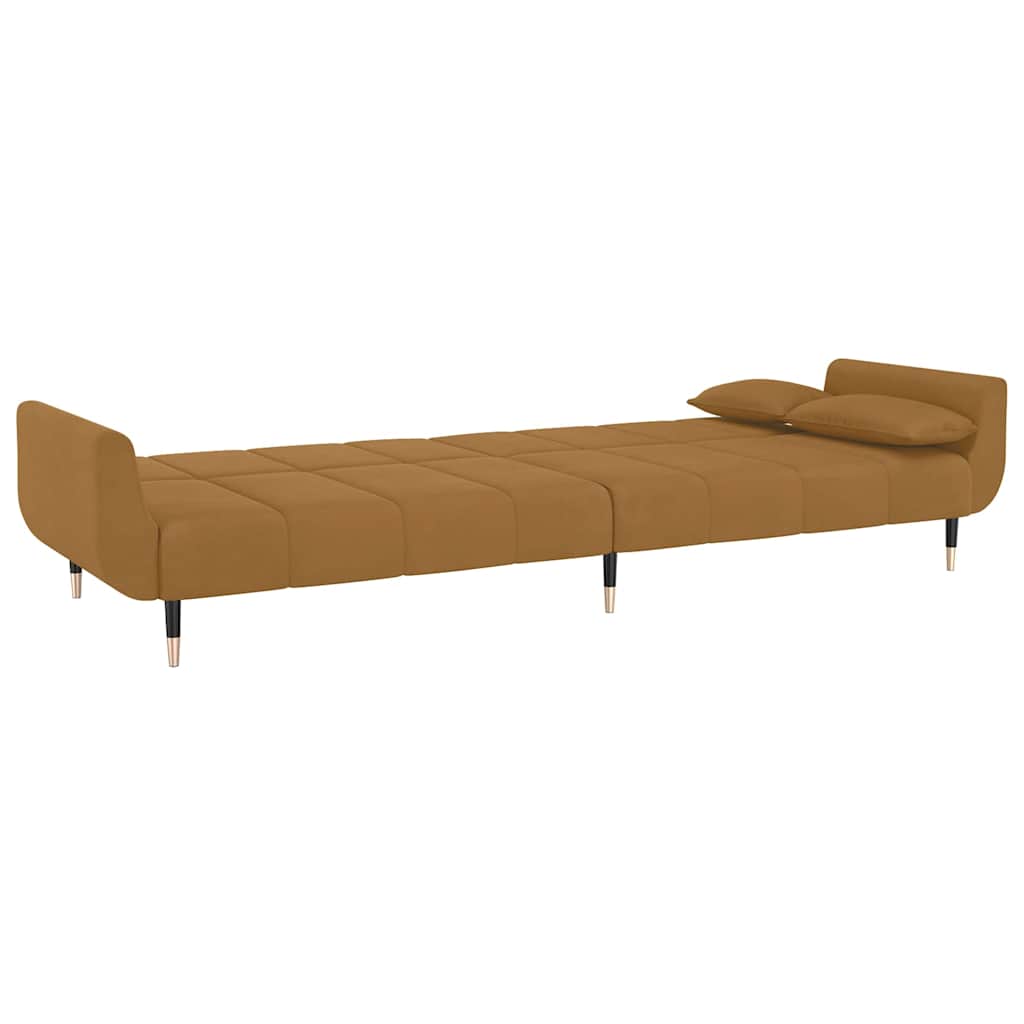 Divano Letto a 2 Posti con 2 Cuscini Marrone in Velluto 337590