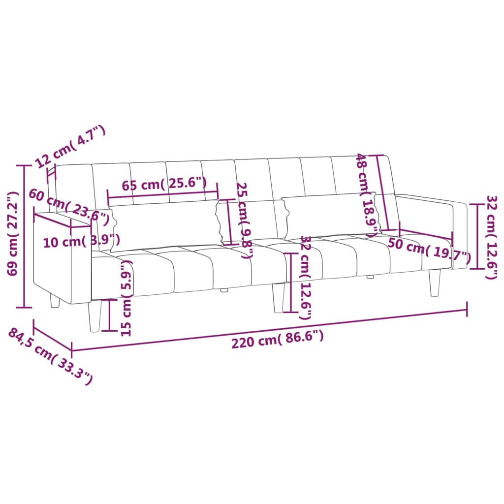 Divano Letto a 2 Posti con 2 Cuscini Marrone Scuro in Tessuto 337494