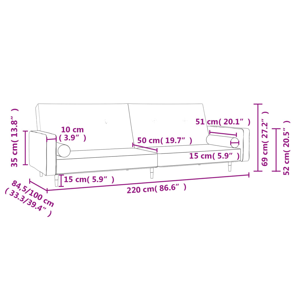 Divano Letto a 2 Posti con 2 Cuscini Nero in Velluto 375752