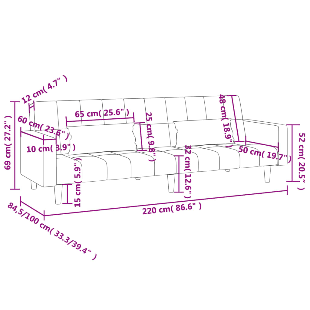 Divano Letto a 2 Posti con 2 Cuscini Tortora in Tessuto 375839