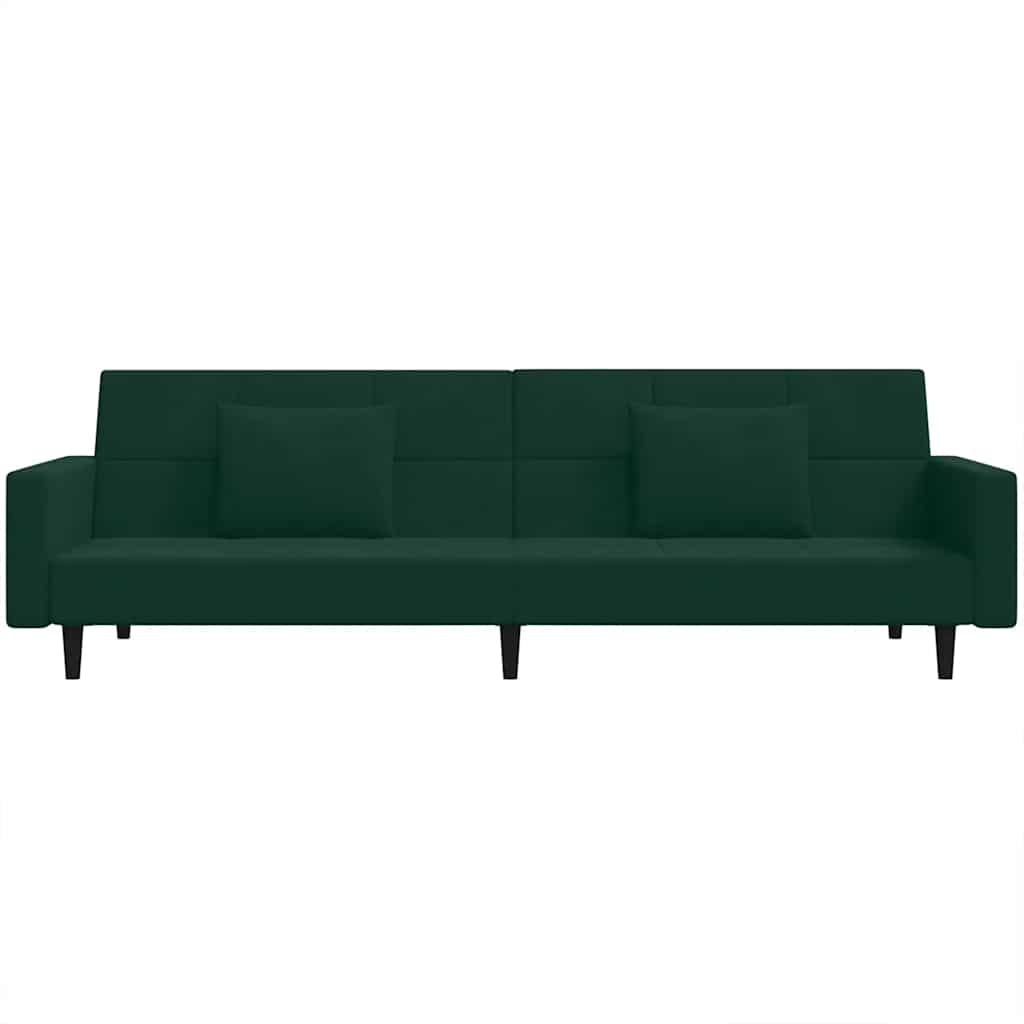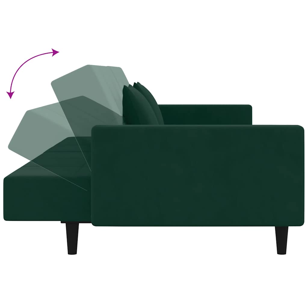 Divano Letto a 2 Posti con 2 Cuscini Verde Scuro in Velluto 375818