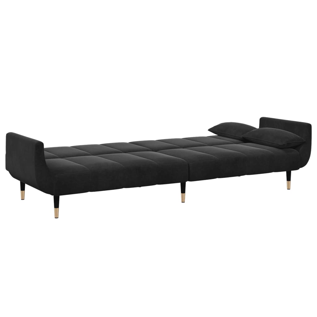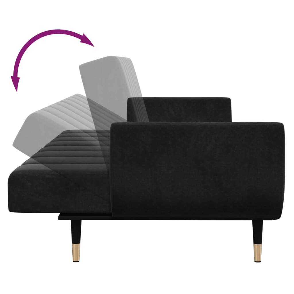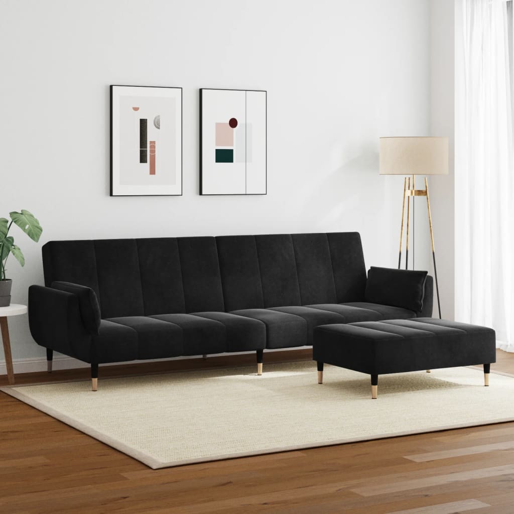 Divano Letto a 2 Posti con Poggiapiedi Nero in Velluto 3258154