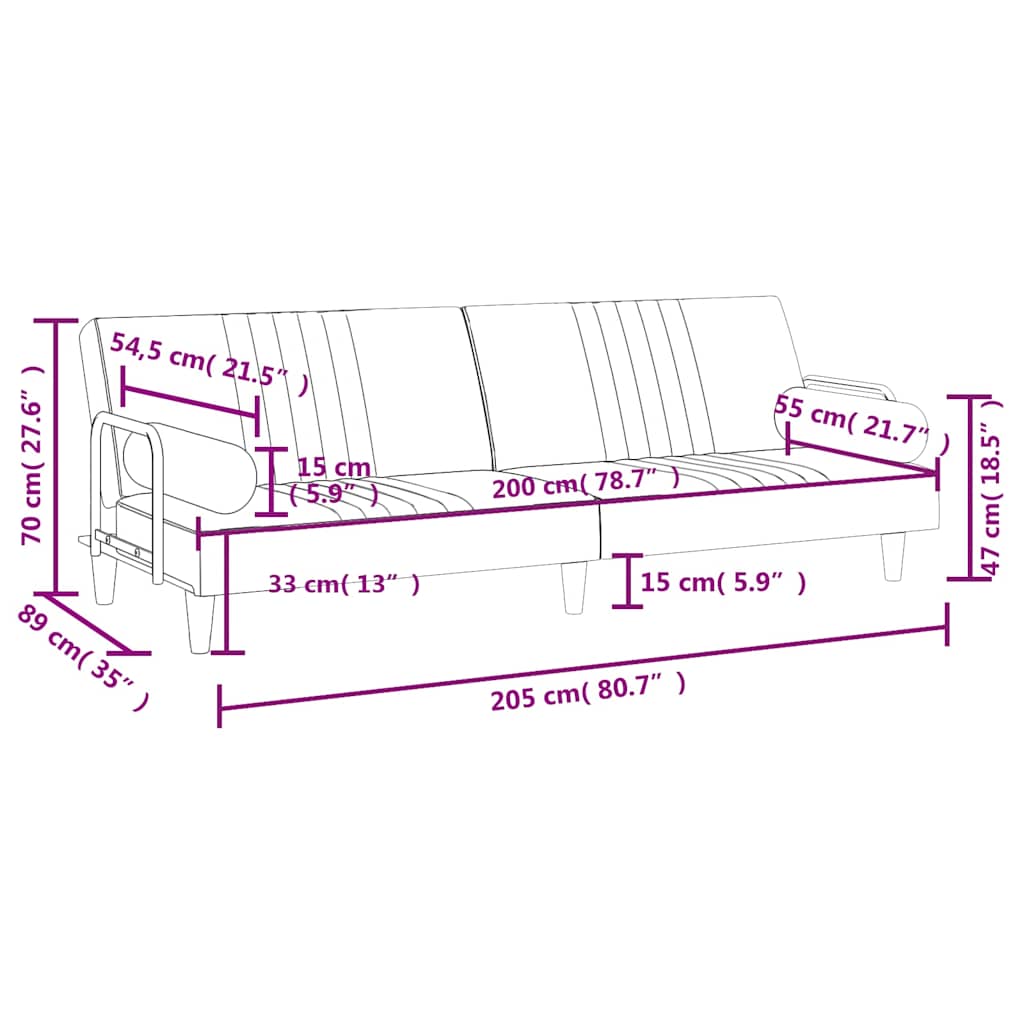 Divano Letto con Braccioli Grigio Scuro in Velluto 351895
