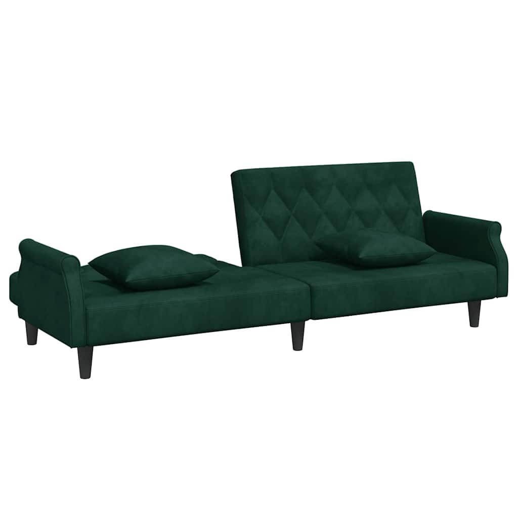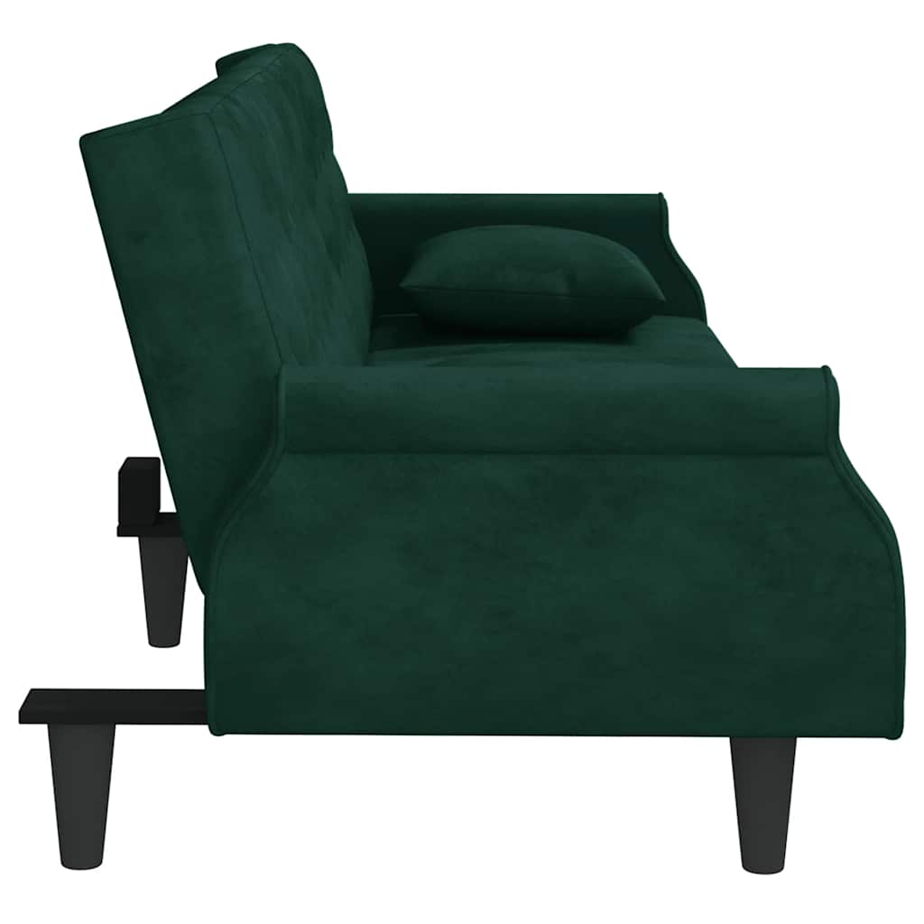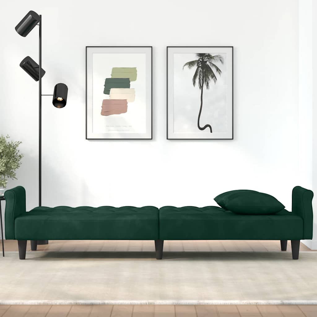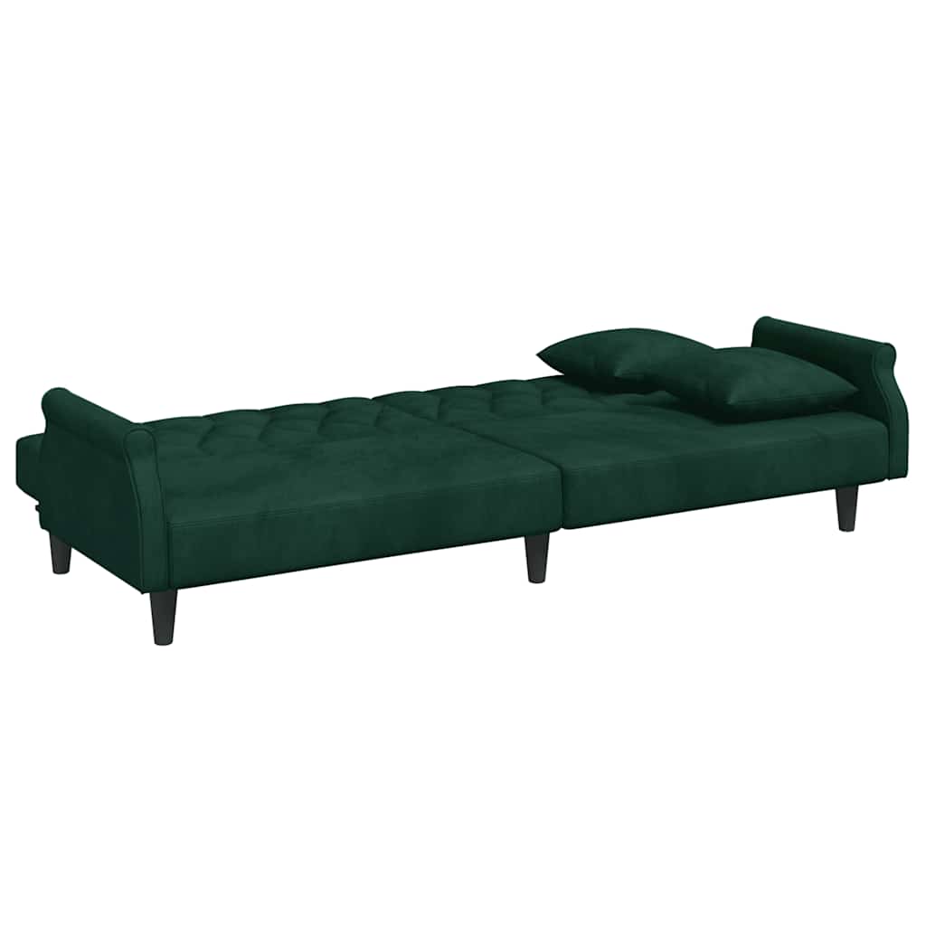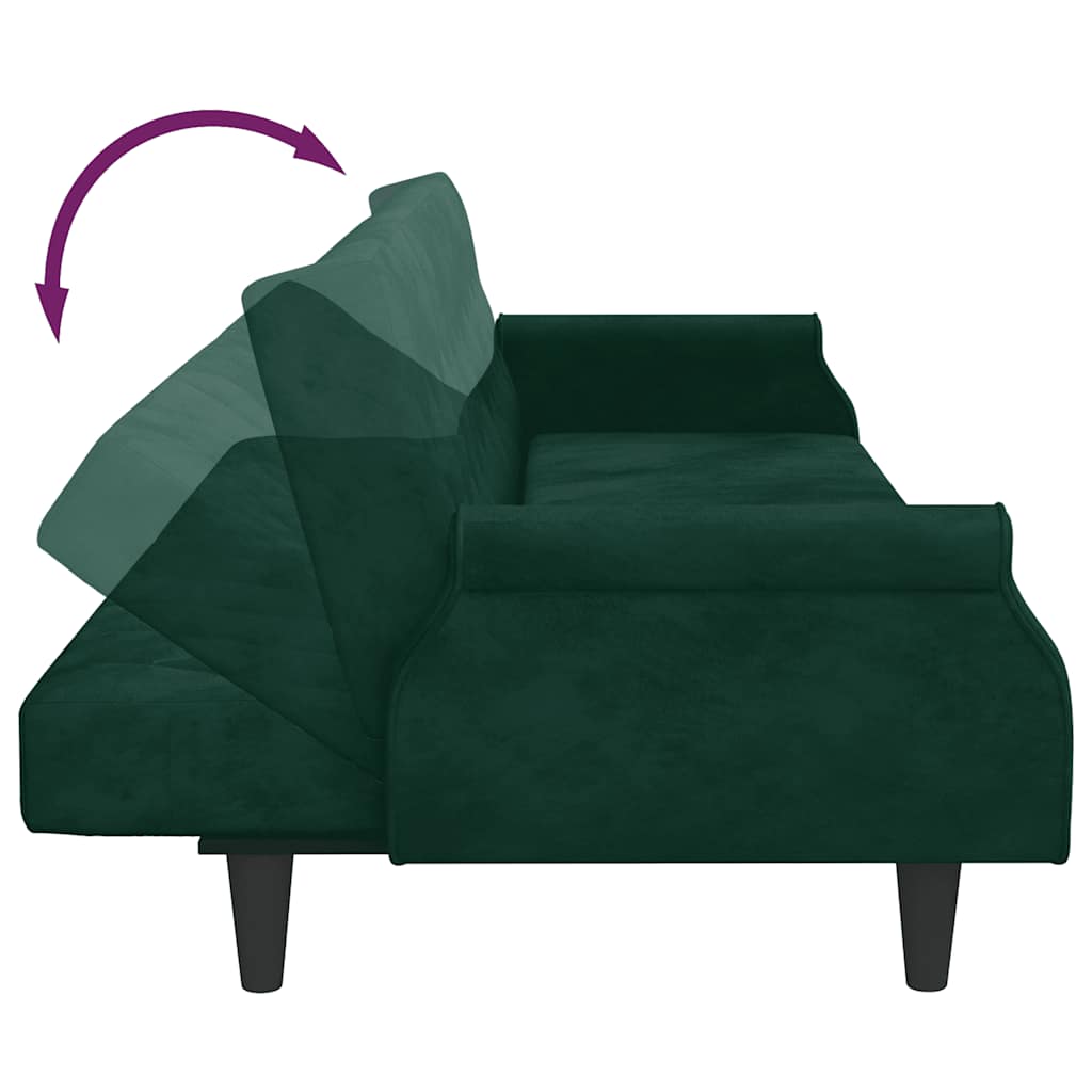Divano Letto con Braccioli Verde Scuro in Velluto 351946