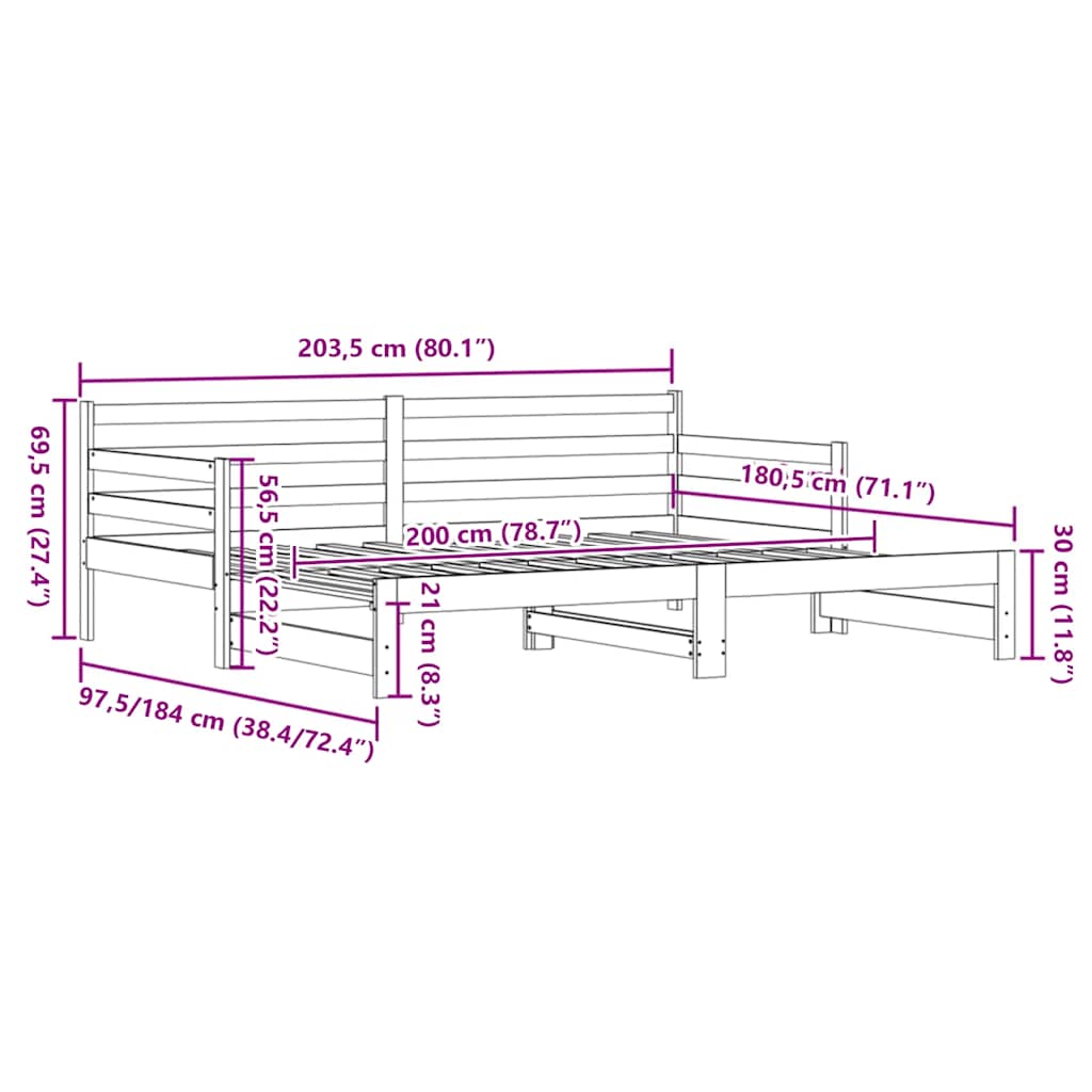 Divano Letto con Letto Estraibile 80x200cm Legno Massello Pino 836150