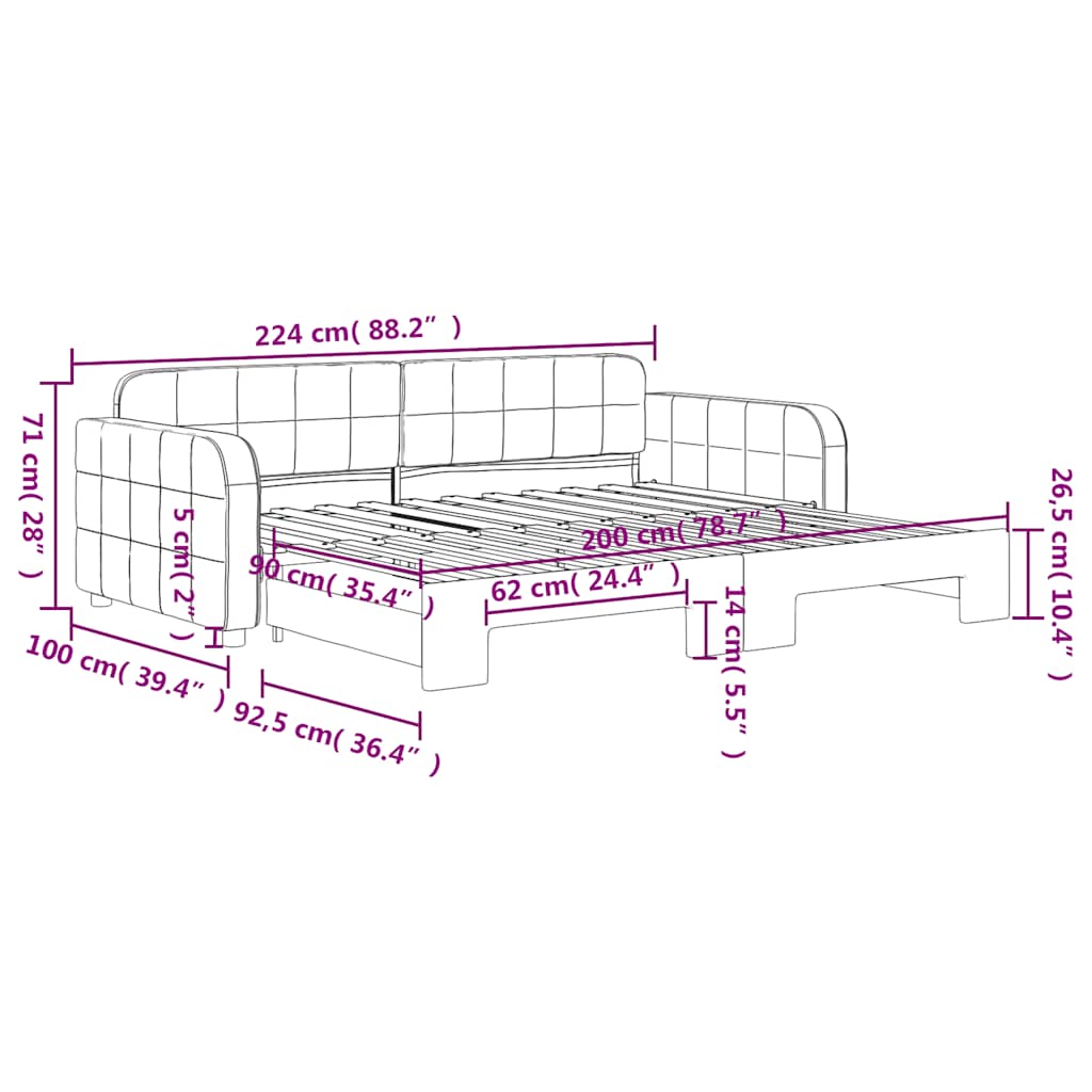 Questo letto da giorno 2 in 1 con il letto estraibile, che funge sia da divano che da letto, è un'aggiunta pratica e accattivante al vostro salotto o alla vostra camera da letto.