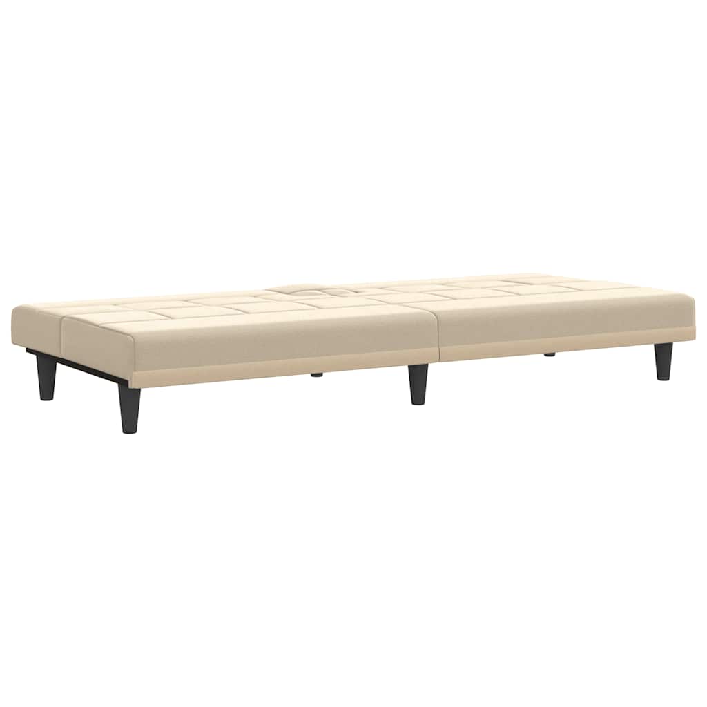 Divano Letto con Portabicchieri in Tessuto Crema 351866