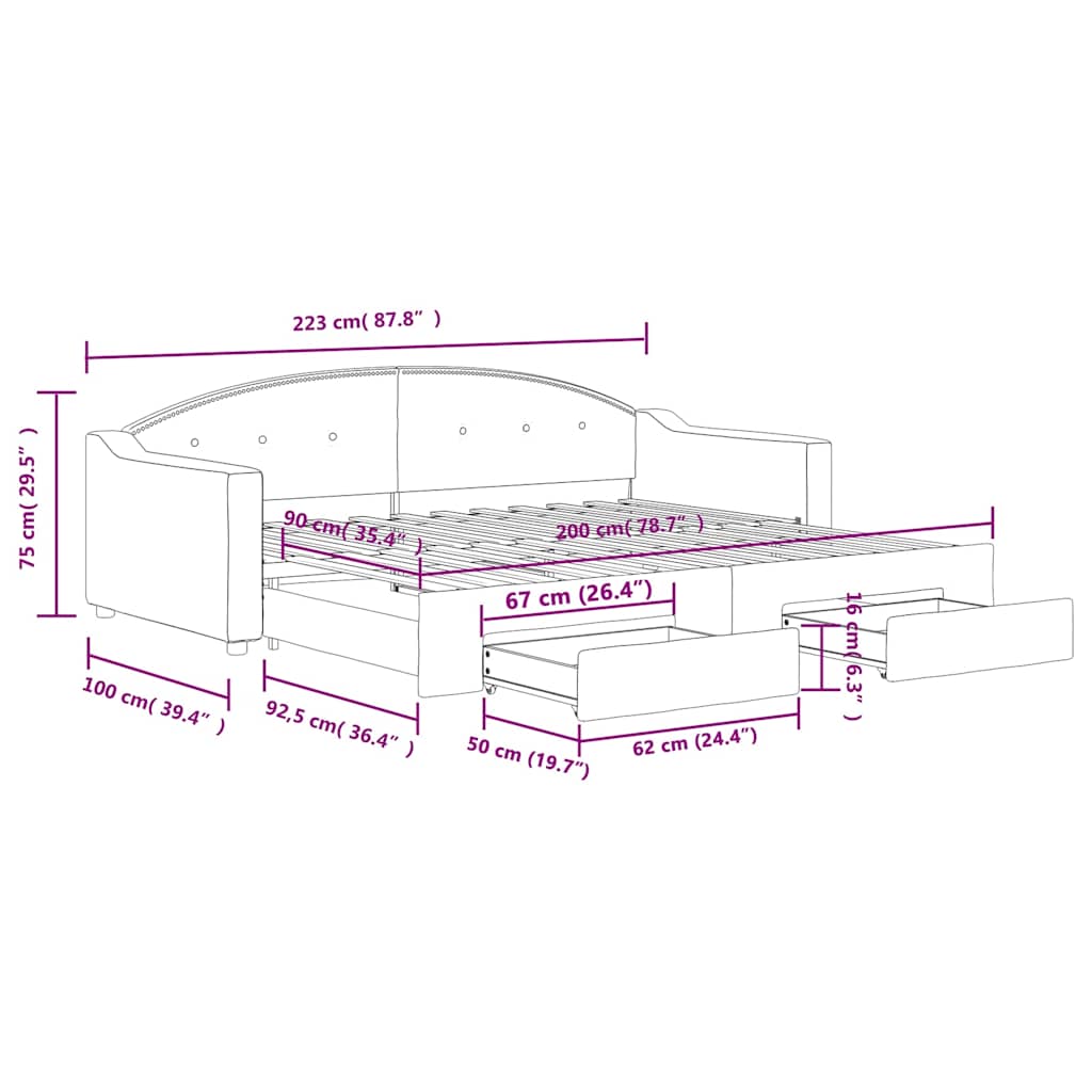 Questo letto da giorno 2 in 1 con il letto estraibile, che funge sia da divano che da letto, è un'aggiunta pratica e accattivante al vostro salotto o alla vostra camera da letto.