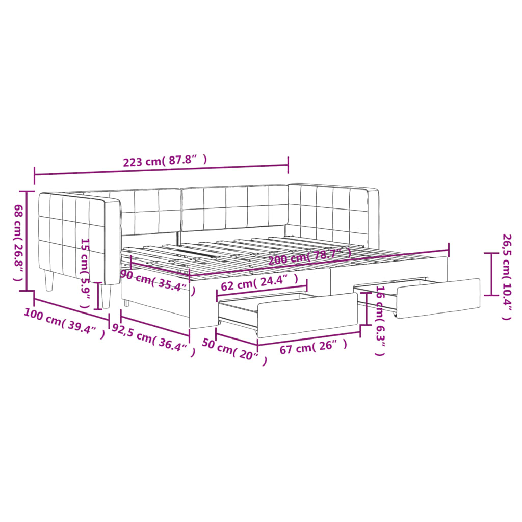 Questo letto da giorno 2 in 1 con il letto estraibile, che funge sia da divano che da letto, è un'aggiunta pratica e accattivante al vostro salotto o alla vostra camera da letto.