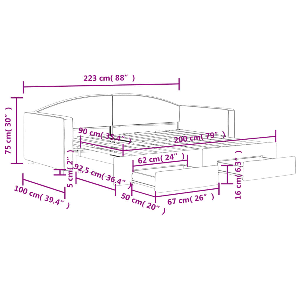 Divano Letto Estraibile Cassetti Grigio Scuro 90x200cm Tessuto 3197225