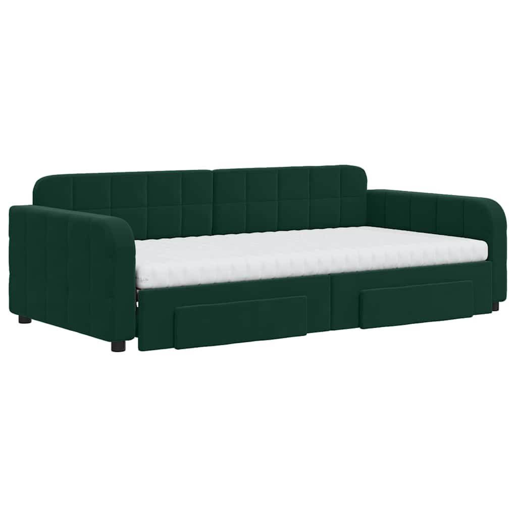 Divano Letto Estraibile Cassetti Verde Scuro 100x200cm Velluto 3197010