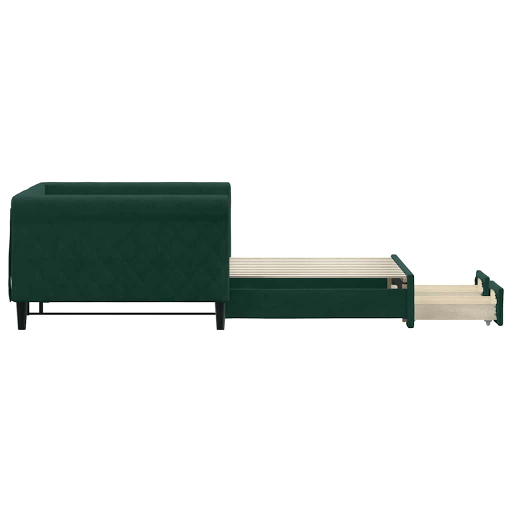 Divano Letto Estraibile Cassetti Verde Scuro 100x200cm Velluto 3197828
