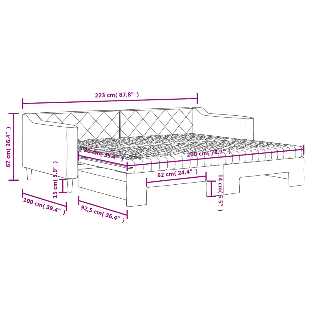 Questo letto da giorno 2 in 1 con il letto estraibile, che funge sia da divano che da letto, è un'aggiunta pratica e accattivante al vostro salotto o alla vostra camera da letto.