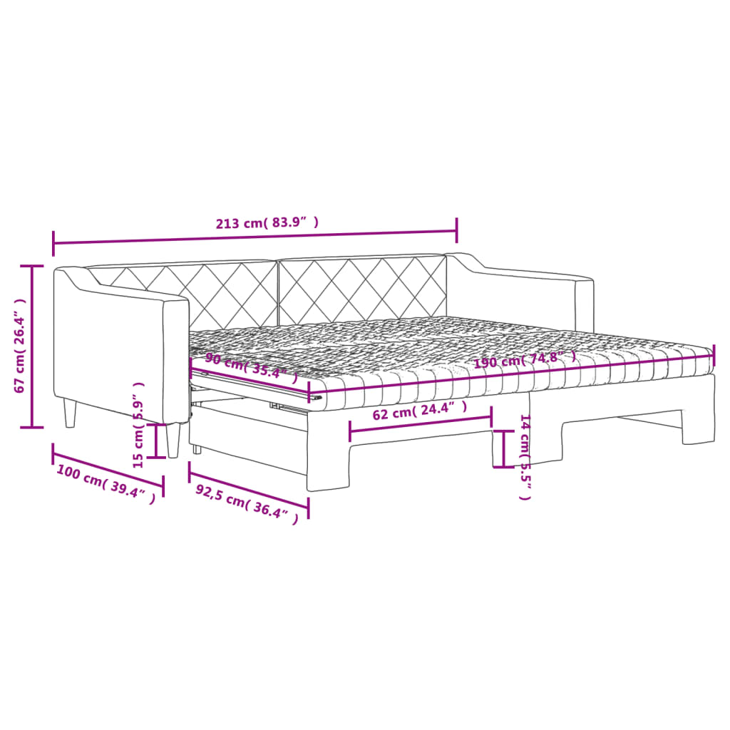 Questo letto da giorno 2 in 1 con il letto estraibile, che funge sia da divano che da letto, è un'aggiunta pratica e accattivante al vostro salotto o alla vostra camera da letto.