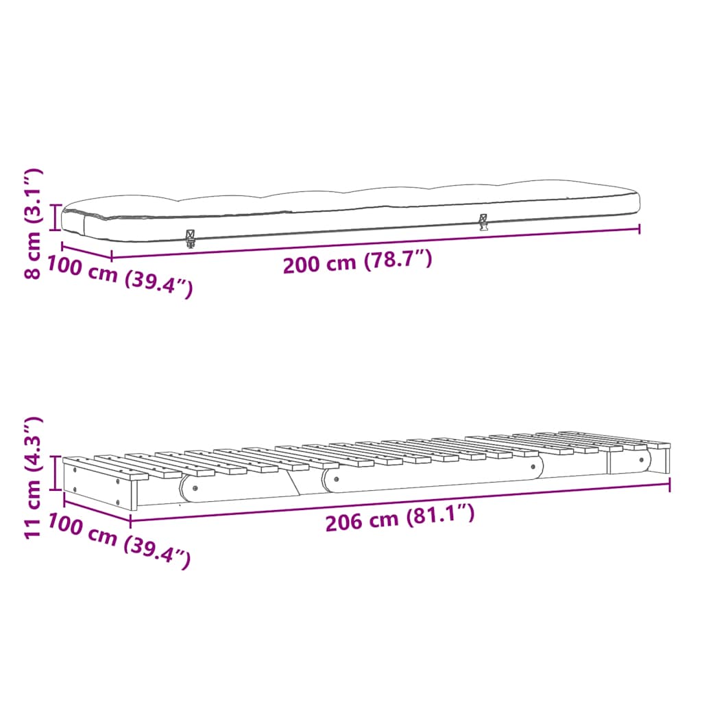 Divano Letto Futon con Materasso 100x206x11cm Massello Douglas 846769