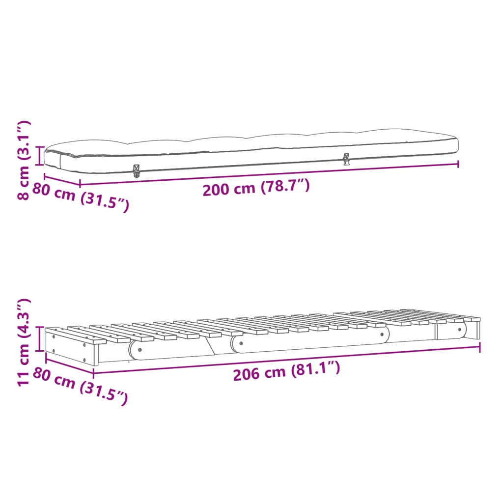 Divano Letto Futon con Materasso 80x206x11cm Massello Douglas 846759