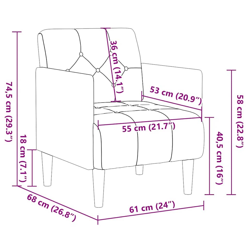 Divano Sedia con Braccioli Grigio Chiaro 55 cm in Velluto 4100595