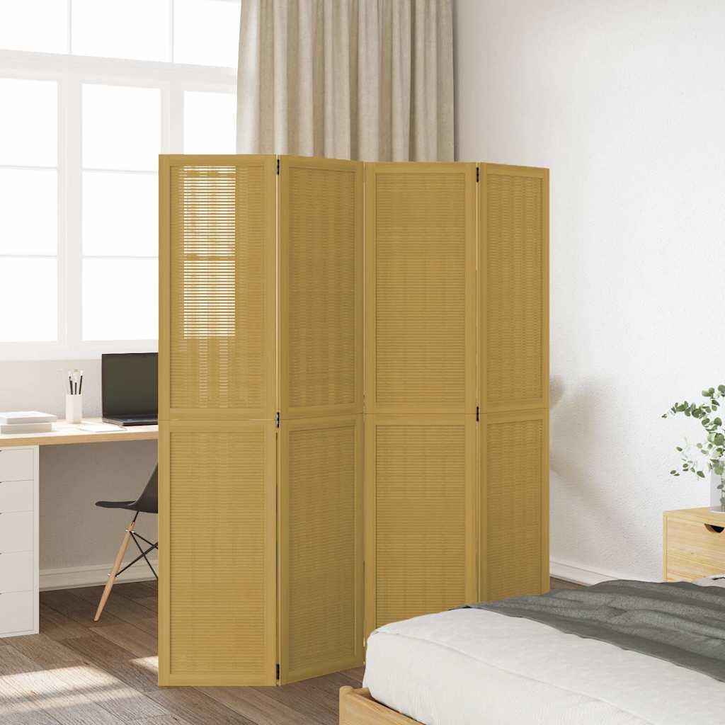 Divisorio Ambienti 4 Pannelli Marrone Legno Massello Paulownia 358818