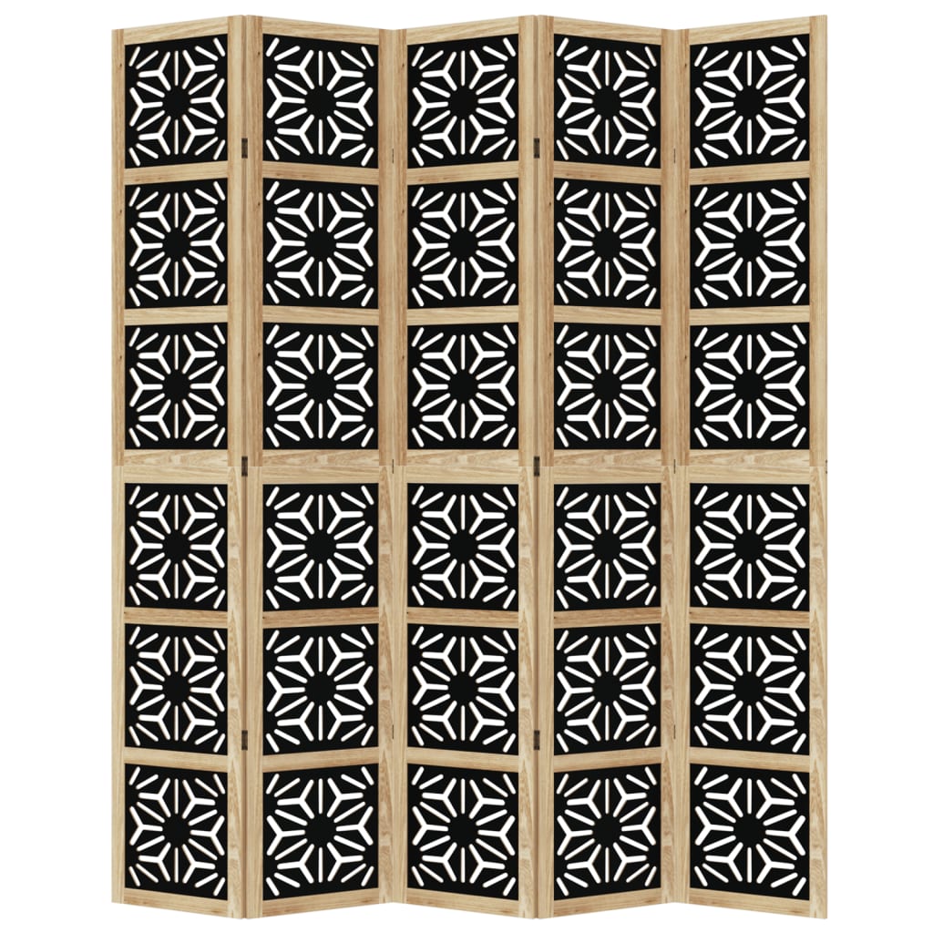 Divisorio Ambienti 5 Pannelli Marrone e nero Legno di Paulownia 358808