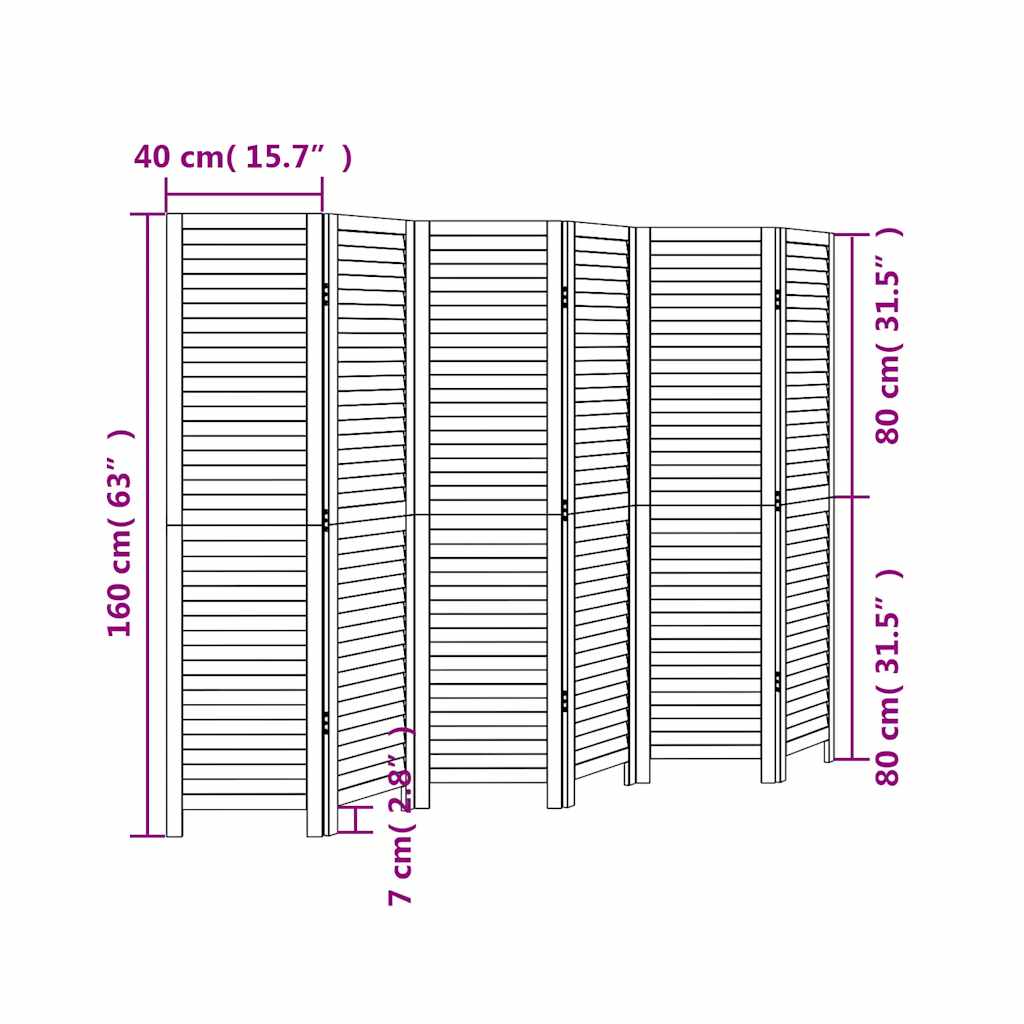 Divisorio Ambienti 6Pannelli Bianco Legno Massello di Paulownia 358841