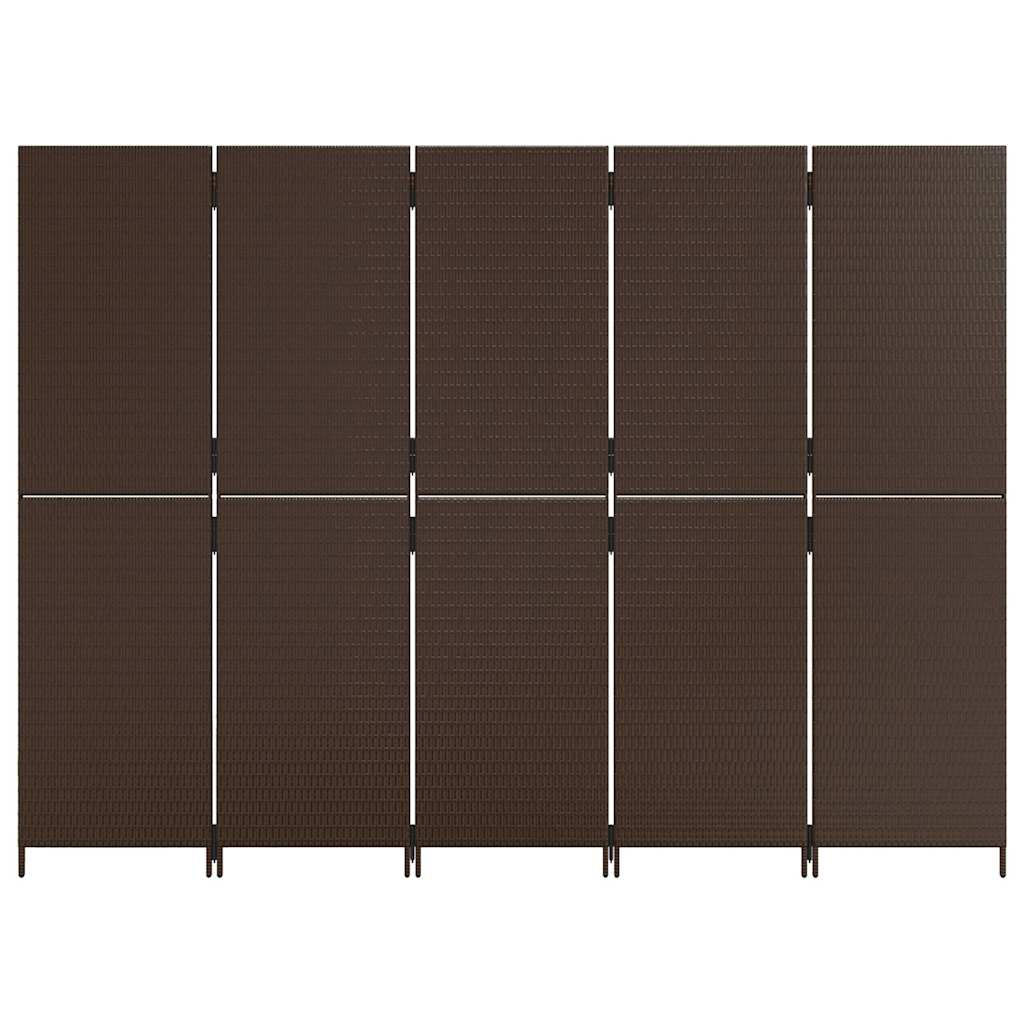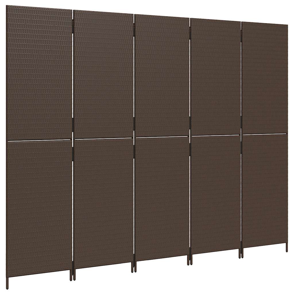 Divisorio per Ambienti a 5 Pannelli Marrone in Polyrattan 365349