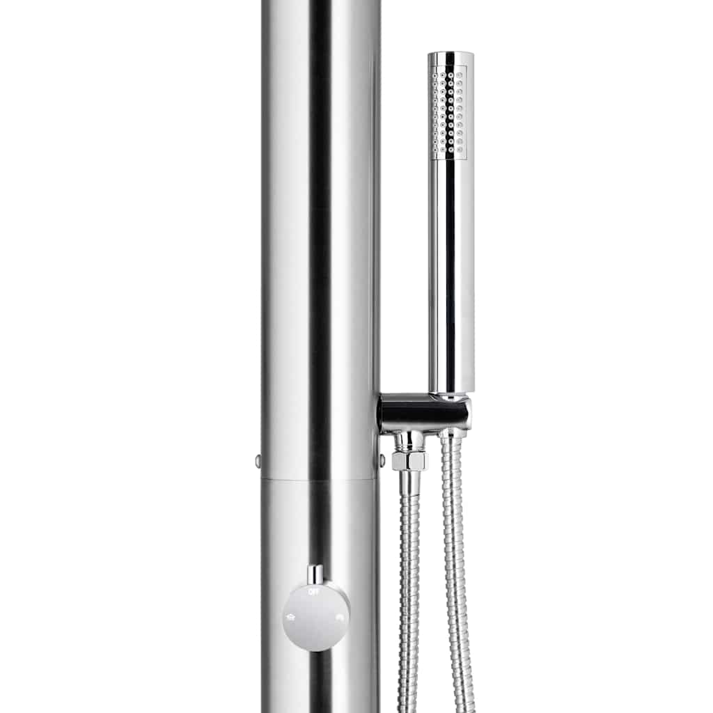 Questa doccia per esterni è stata realizzata in acciaio inossidabile che la rende resistente agli agenti atmosferici. Il sistema è dotato di soffione doccia a cascata e doccetta per soddisfare le vostre esigenze nell'ambito del giardinaggio, dell'irrigazione o per una doccia veloce. La doccetta è dotata di un tubo flessibile a doppia chiusura con una lunghezza di 1,5 m. E' inoltre dotata di supporto per doccetta in ottone.